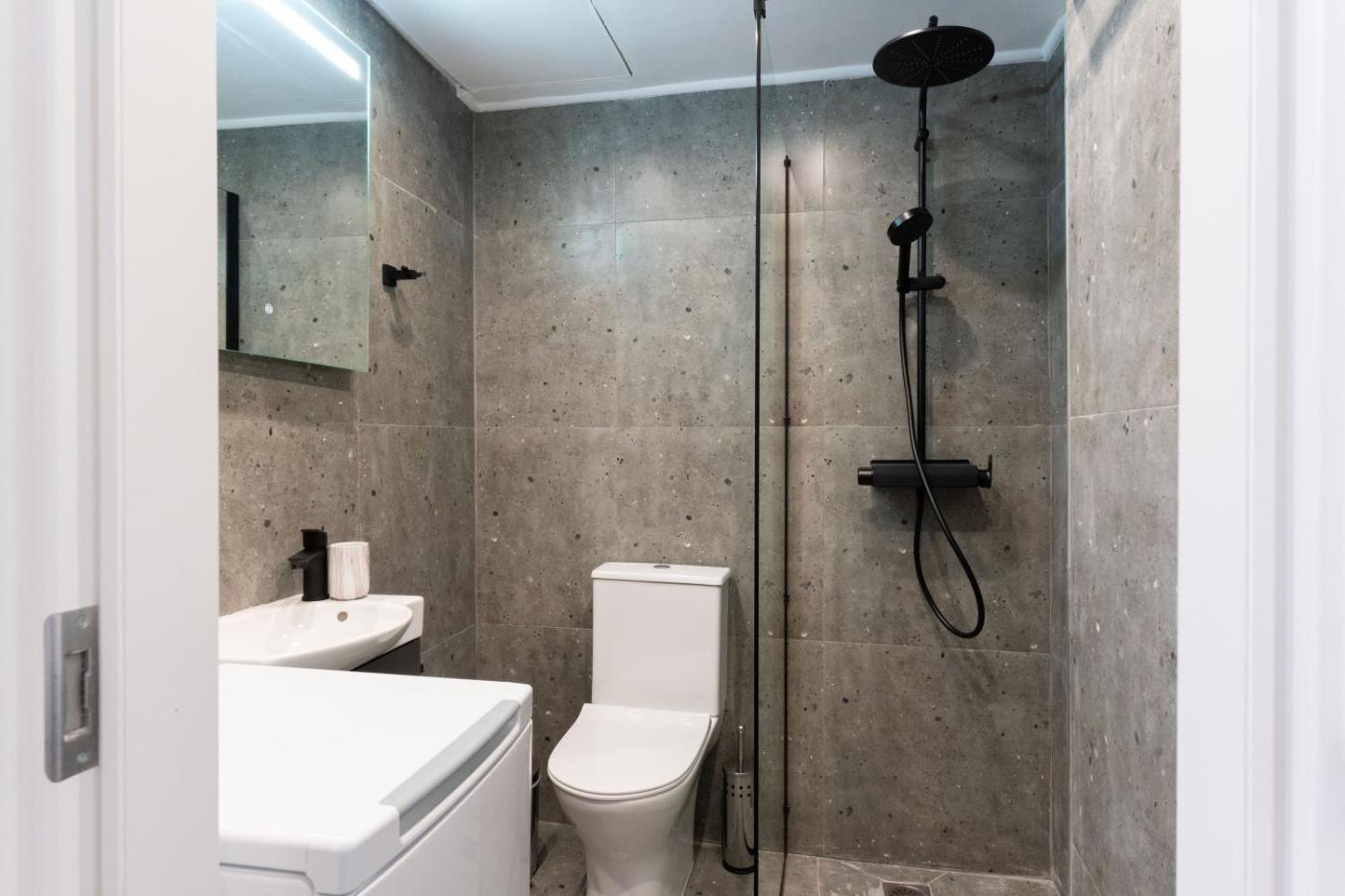 Queen Studio. Featuring free toiletries, this studio includes a private bathroom with a shower and a hairdryer. The studios kitchenette, which has kitchenware and an electric kettle, is available for cooking and storing food. The air-conditioned studio features a flat-screen TV, a washing machine, a private entrance, soundproof walls as well as garden views. The unit has 1 bed.