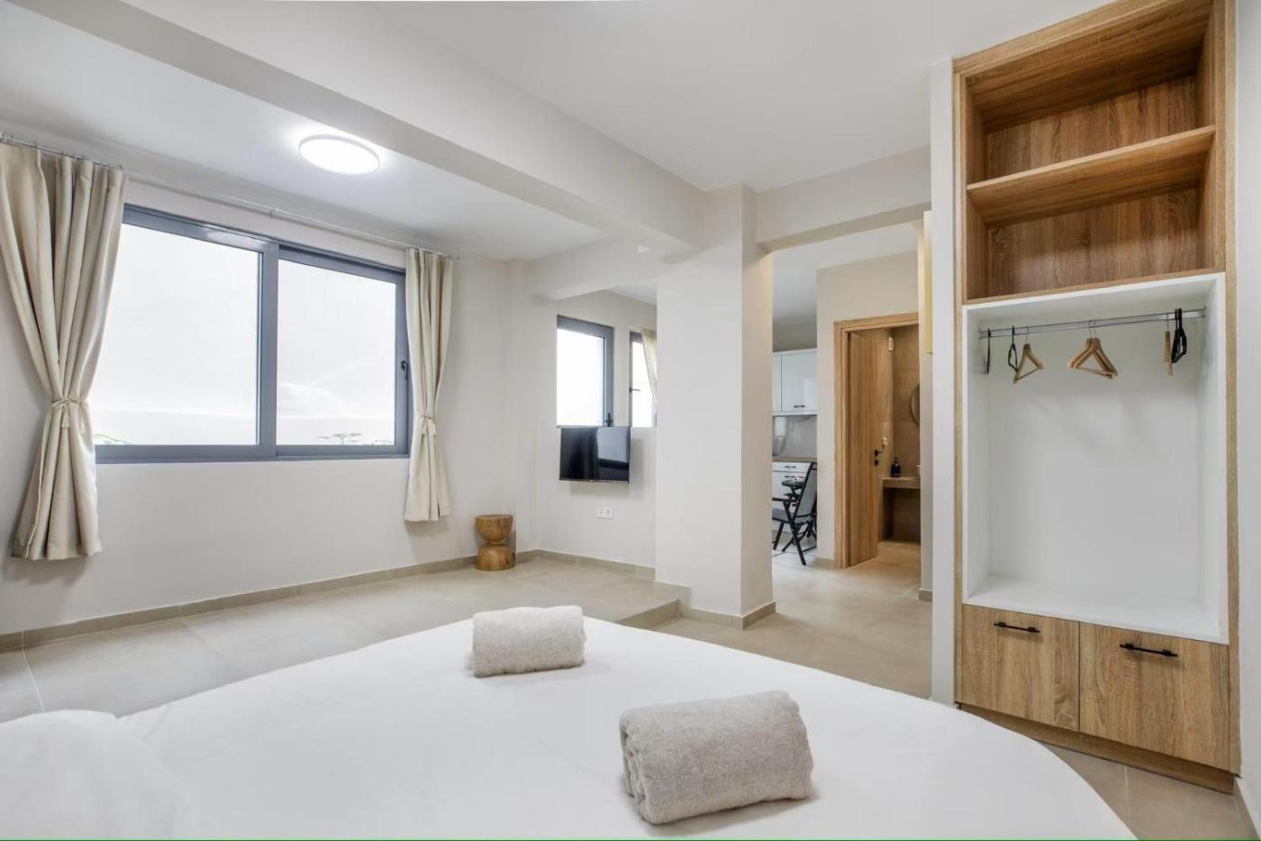 At the aparthotel, each unit comes with a wardrobe, a flat-screen TV, a private bathroom, bed linen and towels.units are fitted with a kettle, while some rooms come with a fully equipped kitchenette with a microwave, a fridge and kitchenware.