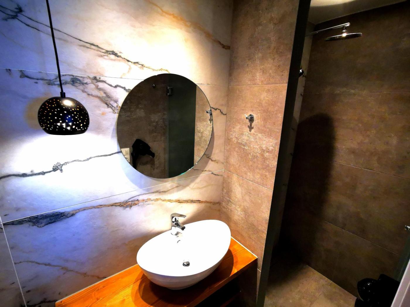 Studio. The studio offers air conditioning, a coffee machine, as well as a private bathroom boasting a shower and a hairdryer. The well-fitted kitchenette has a stovetop, a refrigerator and kitchenware. The studio features a wardrobe, a sofa, a tiled floor, heating and a flat-screen TV. The unit has 2 beds.