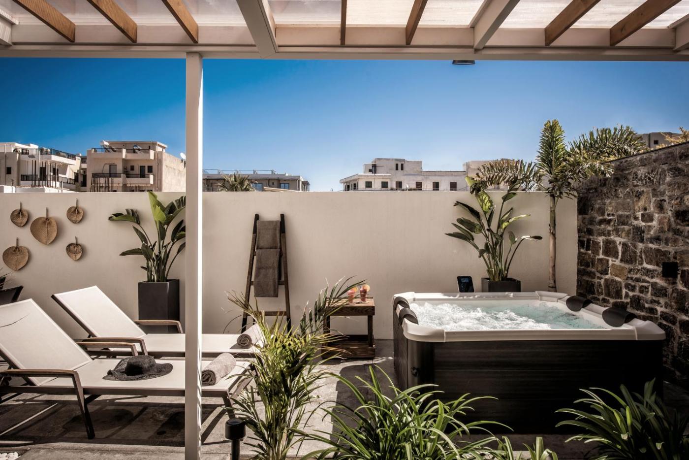 Two-Bedroom Apartment. The hot tub is a top feature of this apartment. This spacious apartment comes with 1 living room, 2 separate bedrooms and 1 bathroom with a walk-in shower and free toiletries. Meals can be prepared in the well-fitted kitchen, which features a stovetop, a refrigerator, kitchenware and an oven. The air-conditioned apartment features a flat-screen TV with streaming services, a washing machine, a private entrance, a tea and coffee maker as well as garden views. The unit has 4 beds.