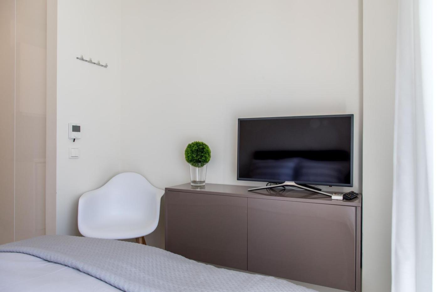 One-Bedroom Apartment. Featuring a private entrance, this air-conditioned apartment is comprised of a kitchen, 1 bedroom and 1 bathroom with a walk-in shower and a hairdryer. The well-equipped kitchen features a stovetop, a refrigerator, kitchenware and a toaster. The apartment offers a flat-screen TV, a washing machine, soundproof walls, a coffee machine as well as city views. The unit offers 1 bed.